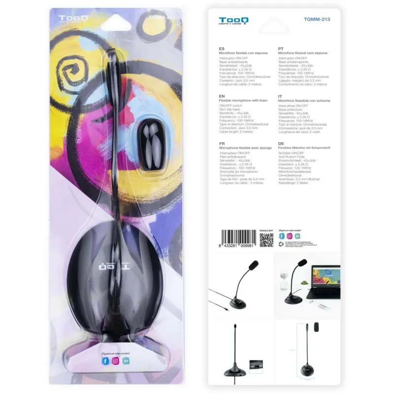 TooQ TQMM-213 Micrófono Multimedia Flexible Jack 3.5 mm Negro
