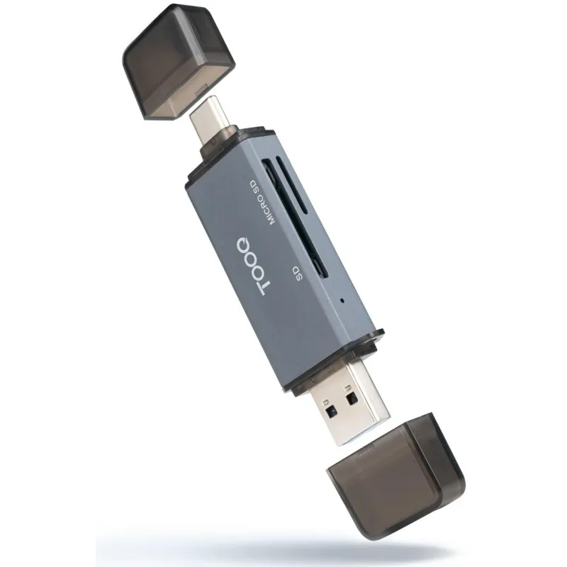 TooQ Lector de Tarjetas SD + TF, con entradas USB-C 3.0 + USB A, Color Gris