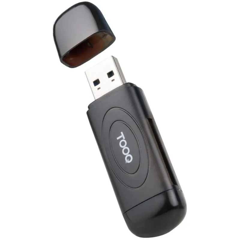 Lector de tarjetas TooQ TQR-3002B con interfaz USB 3.2 Gen 1 Type-A, velocidad de transferencia de datos 5000 Mbit/s, color negro