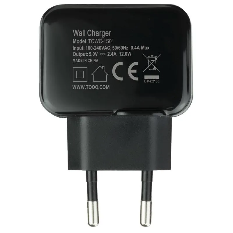 TooQ TQWC-1S01 Cargador de Pared 12 W USB-A 2.0 Negro