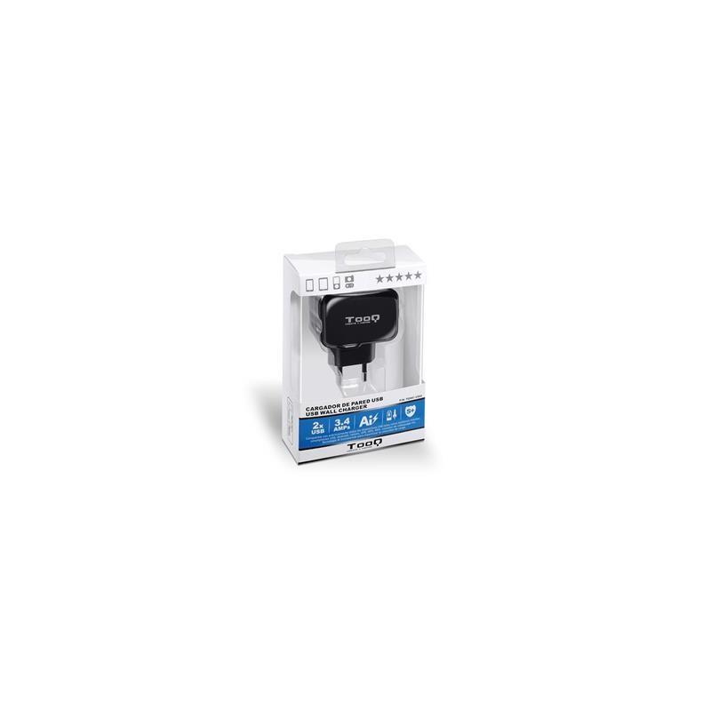TooQ TQWC-1S02 Cargador de Pared 2 USB Negro