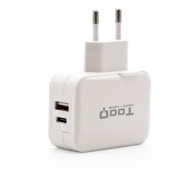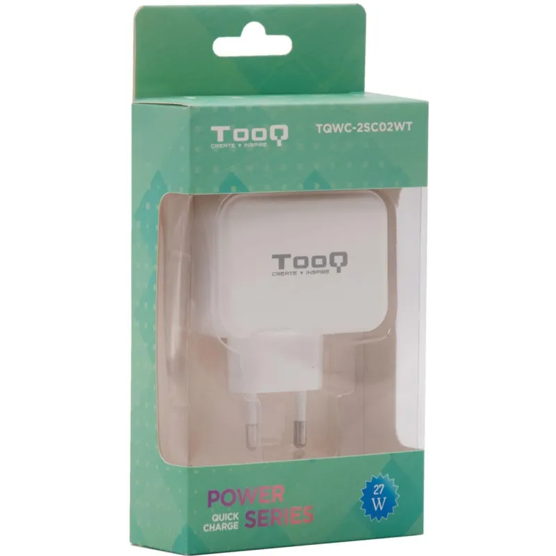 TooQ TQWC-2SC02WT Cargador de Pared Universal USB-A/USB-C 27W Blanco