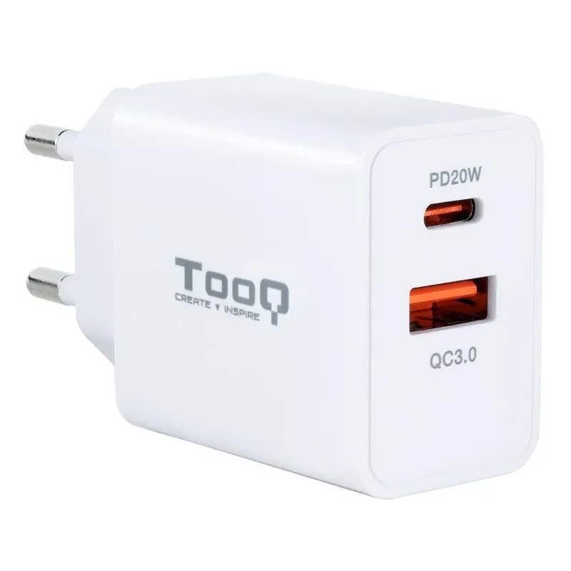 TooQ TQWC-2SC04WT Cargador de Pared USB-A + USB-C 20W Blanco