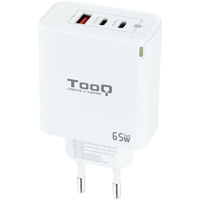 TooQ TQWC-GANQC2PD65WT Cargador de Pared Universal USB-A/USB-C 65 W Blanco