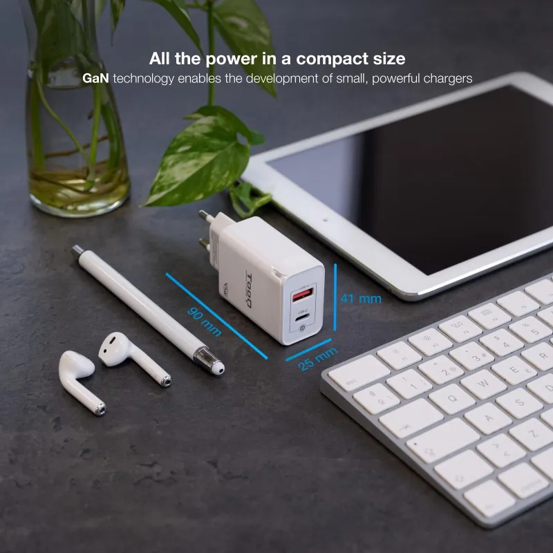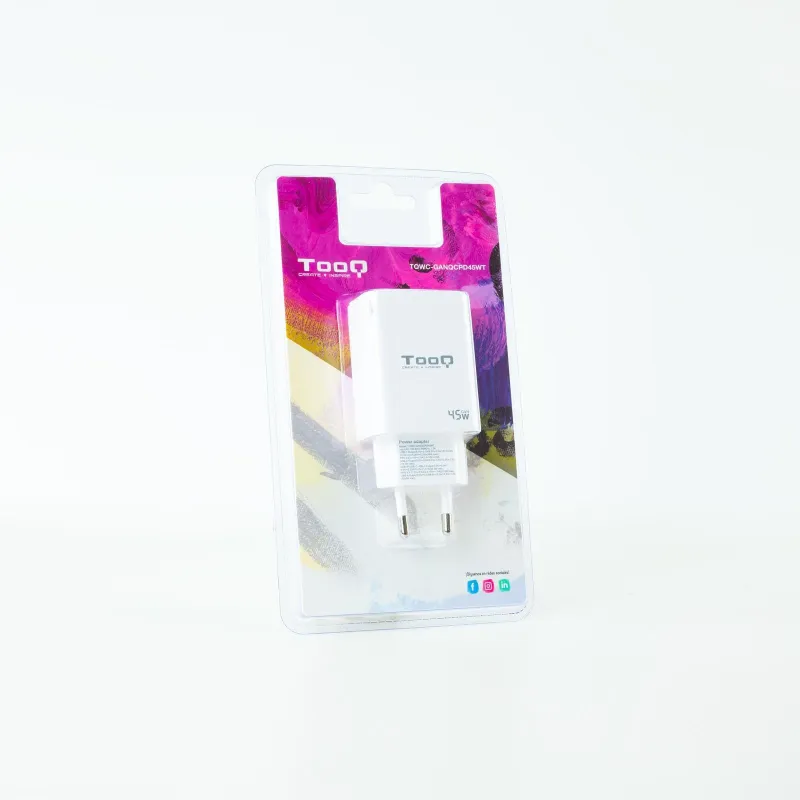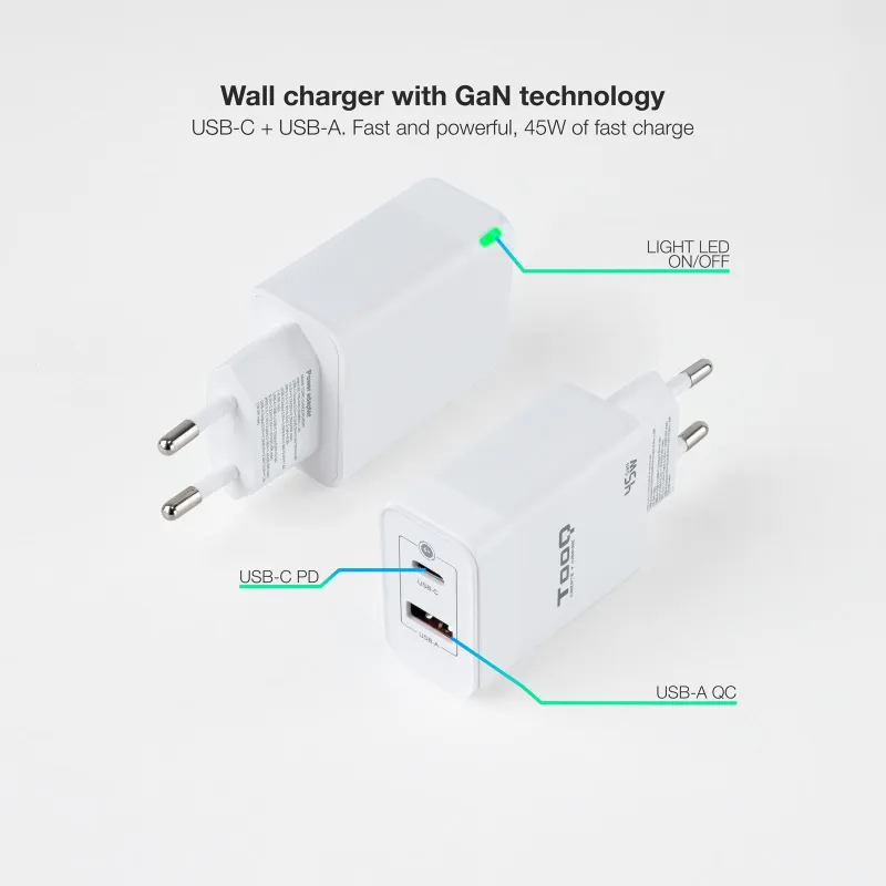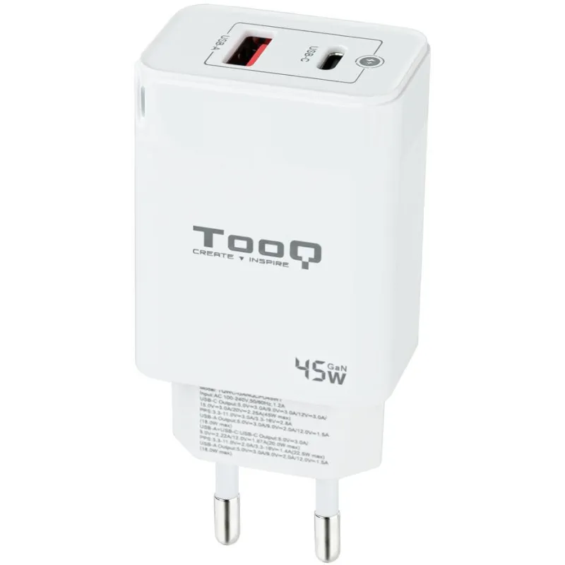 TooQ TQWC-GANQCPD45WT Cargador de Pared Universal USB-A/USB-C 45 W Blanco