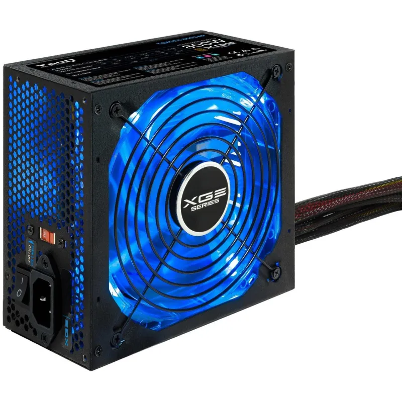 Certificada con el 80 PLUS Bronze, esta PSU ATX versión 2.31 ofrece un nivel de ruido extremadamente bajo de solo 17 dB gracias a su ventilador de 14 cm con tecnología de rodamientos de bolas, asegurando un funcionamiento silencioso y eficiente. Su diseño robusto cuenta con iluminación LED azul y un interruptor de encendido/apagado integrado.