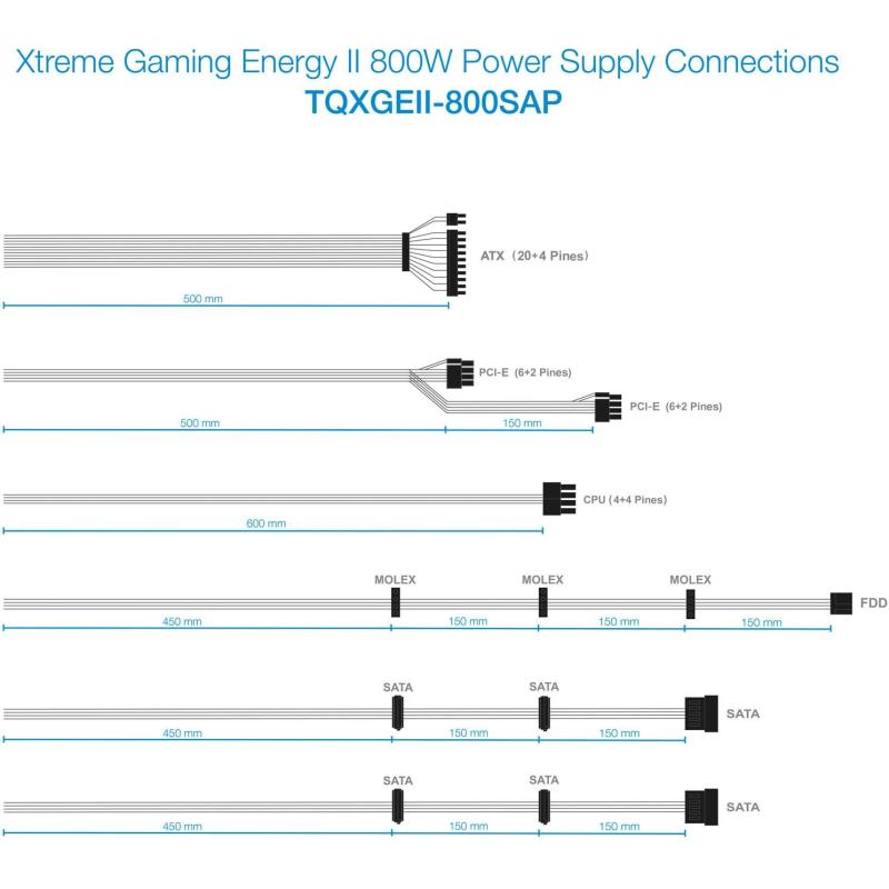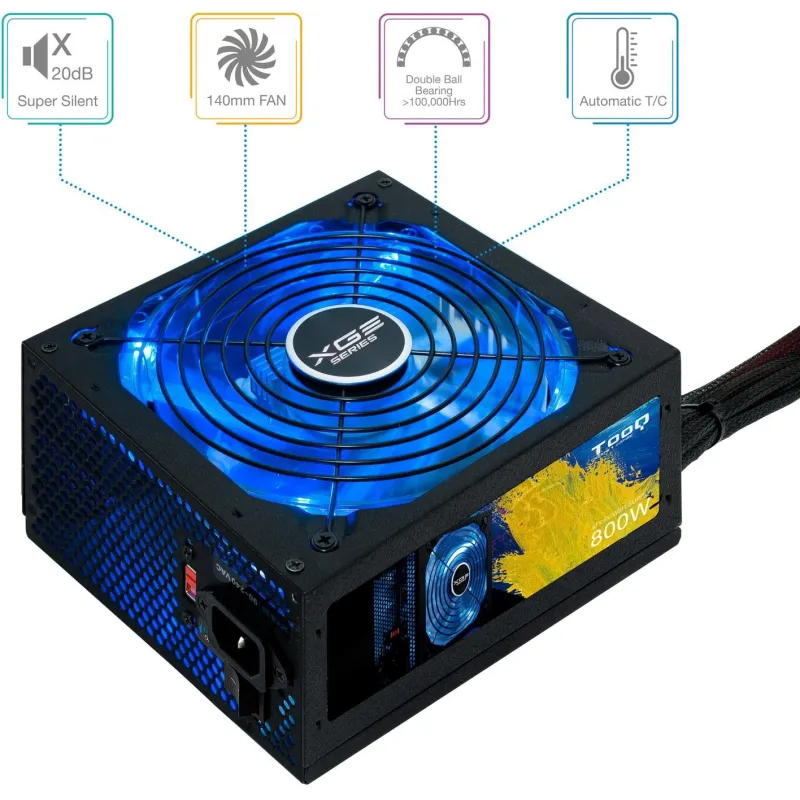 DISEÑADA PARA JUGADORES MUY ENTUSIASTAS Y CONFIGURACIONES EXIGENTES: La serie gaming XGE II de TOOQ está diseñada para jugadores muy entusiastas y configuraciones exigentes. Esta serie de fuentes de alimentación de alto rendimiento lleva el certificado 80 PLUS BRONZE, por lo que se garantiza más del 82% de eficiencia.