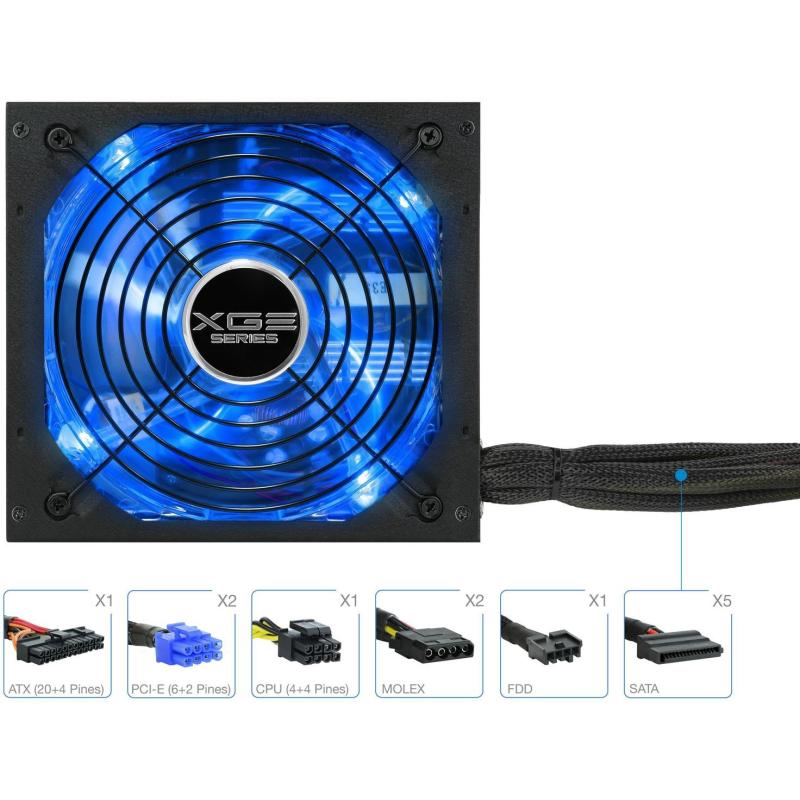 La serie gaming XGE II de TOOQ está diseñada para jugadores muy entusiastas y configuraciones exigentes. Esta serie de fuentes de alimentación de alto rendimiento lleva el certificado 80 PLUS BRONZE, por lo que se garantiza más del 82% de eficiencia. La poderosa salida +12V garantiza la alimentación de microprocesadores y GPU multi núcleos de última generación. Esta fuente incorpora un ventilador con luz LED azul APAGABLE para adaptar a las necesidades de cada usuario. El ventilador lleva rodamientos fabricados con doble cojinete de bolas, con lo cual tiene una vida útil exageradamente larga (más de 20 años de vida útil con uso de 10 horas diarias). Sabemos que los jugadores exigentes usan torres altas, por lo tanto, esta fuente incorpora cables extra largos y mallados para que los jugadores monten su equipo tranquilamente sin sorpresa. En conclusión, es el “corazón” potente y perfecto para empujar su súper configuración de equipo.