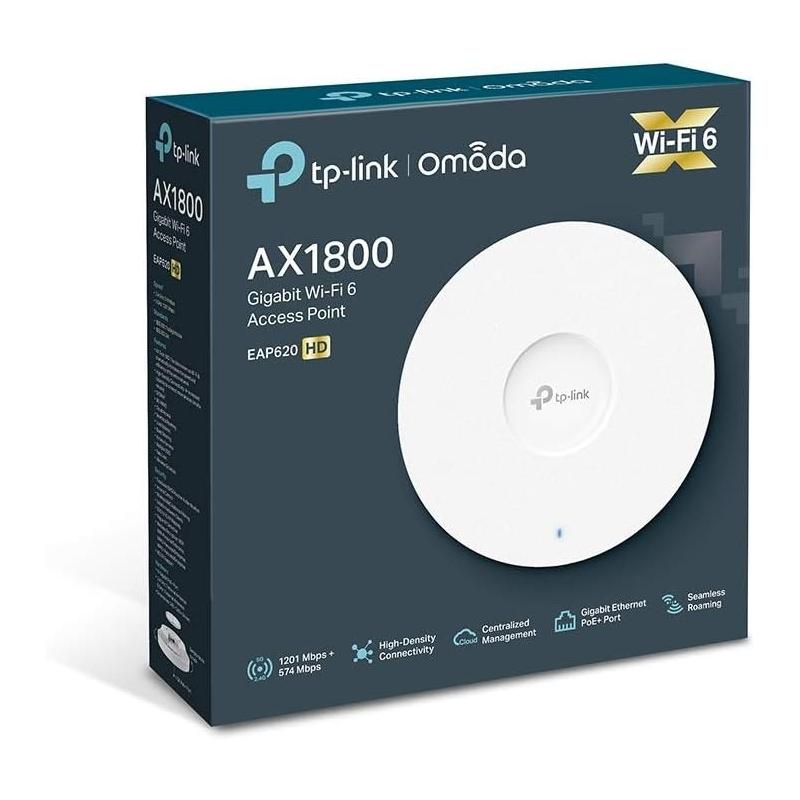 Punto de Acceso Tp-link Omada EAP620 HD WiFi 6 doble banda 2.4/5 GHz 1201 Mbps MU-MIMO BeamForming PoE VLAN y seguridad avanzada para redes empresariales