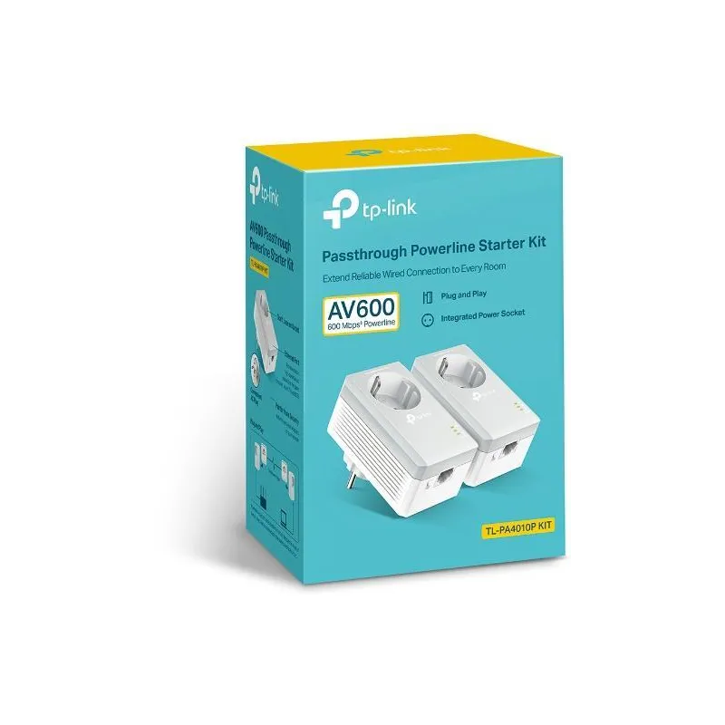 QUÉ HACE ESTE PRODUCTO: El TL-PA4010P KIT convierte su línea eléctrica existente en una red de alta velocidad sin necesidad de nuevos cables o perforaciones. No se requiere configuración, simplemente conecte su adaptador a su toma de corriente y puede establecer una infraestructura de red en un instante. Además, su enchufe integrado asegura que ninguna toma de corriente se desperdicie.