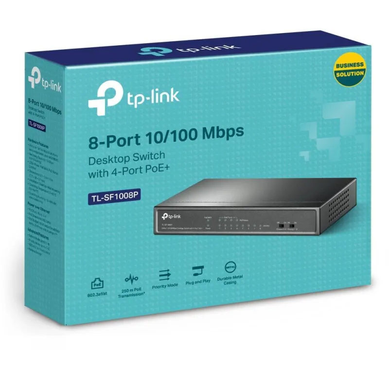 FÁCIL DE USAR: TL-SF1008P es fácil de instalar y usar. No requiere configuración ni instalación. Con diseño de escritorio, rendimiento y calidad sobresalientes, el switch de escritorio TP-LINK TL-SF1008P de 8 puertos 10/100Mbps con 4 puertos PoE es una opción ideal para expandir su red doméstica o de oficina.