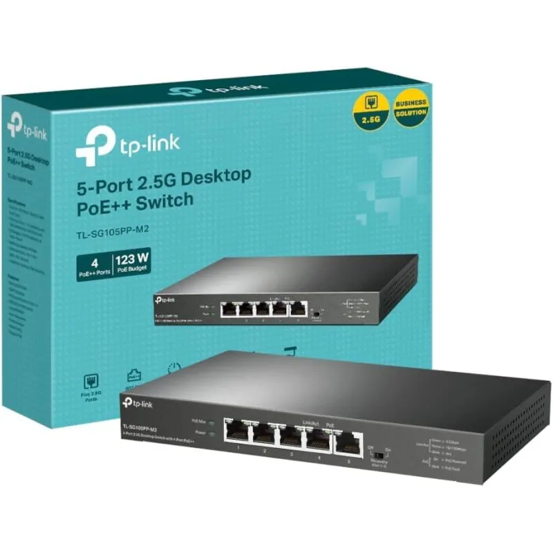 Switch TP-Link TL-SG105PP-M2 PoE 5 Puertos Ethernet, velocidad de Transferencia de 1000 Mbit/s
