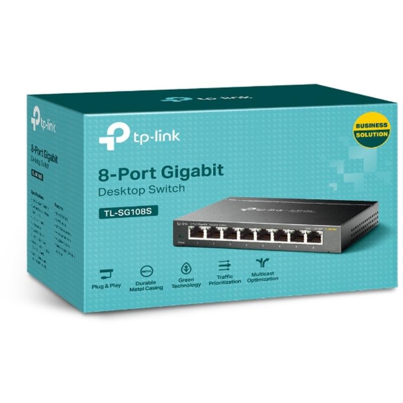 Switch Tp-link TL-SG108S Switch no administrado de 8 puertos Gigabit QoS Plug and Play diseño compacto Negro
