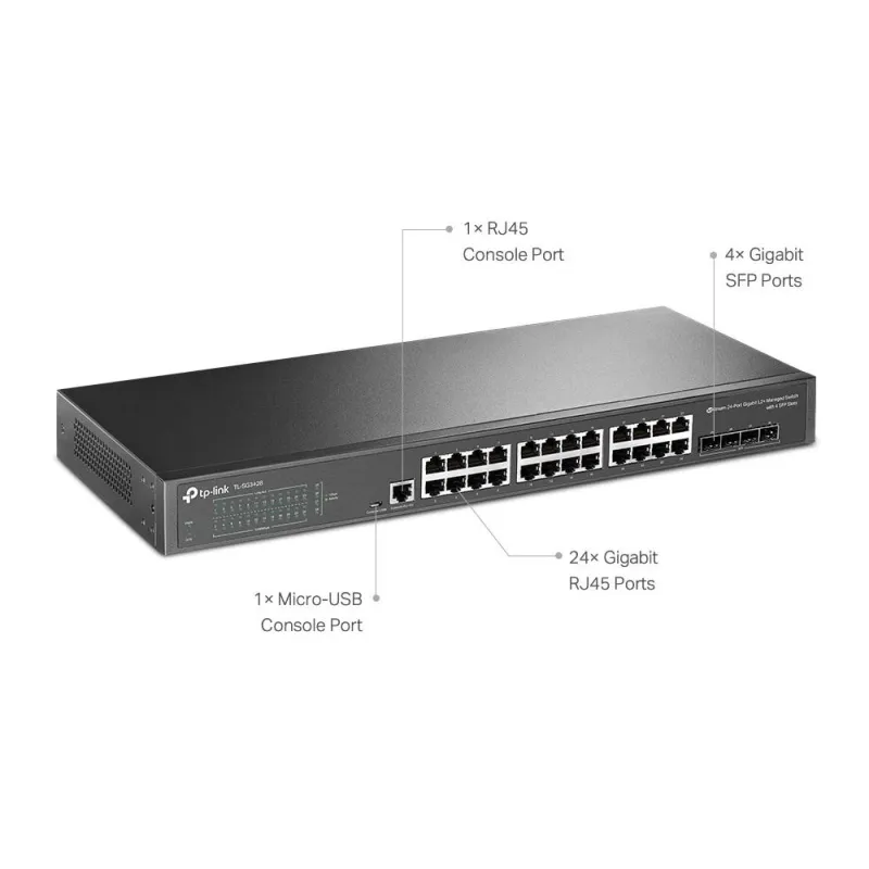 Switch TP-Link TL-SG3428 Gestionado de capa L2 y L3 24 Puertos Gigabit + 4 SFP velocidad de Transferencia de 1000 Mbit/s, color Negro