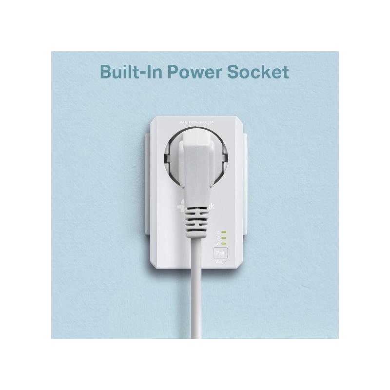 TOMA DE CORRIENTE ADICIONAL PARA DISPOSITIVOS ADICIONALES: La toma de corriente integrada del TL-PA4020P permite conectar un dispositivo adicional o barra de energía al adaptador como si fuera una toma de corriente normal. Esto asegura que incluso con el TL-PA4020P enchufado, no se desperdiciará ninguna toma de corriente.