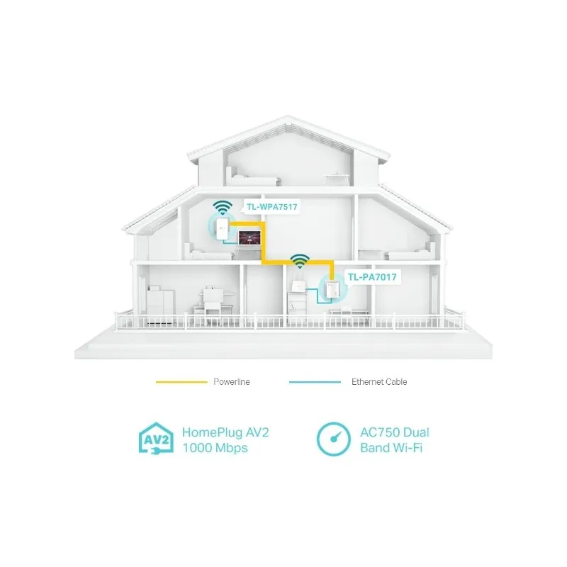 VELOCIDADES AV1000 Y ALCANCE DE 300 METROS: Utilizando la avanzada tecnología HomePlug AV2, el KIT TL-WPA7517 garantiza una conexión Wi-Fi y cableada estable y de alta velocidad, proporcionando transmisiones de datos de hasta 1000 Mbps* a través del cableado eléctrico para alcances de hasta 300 metros. Transmite en HD, juega en línea y descarga archivos grandes sin interrupciones gracias a enlaces Powerline fiables.