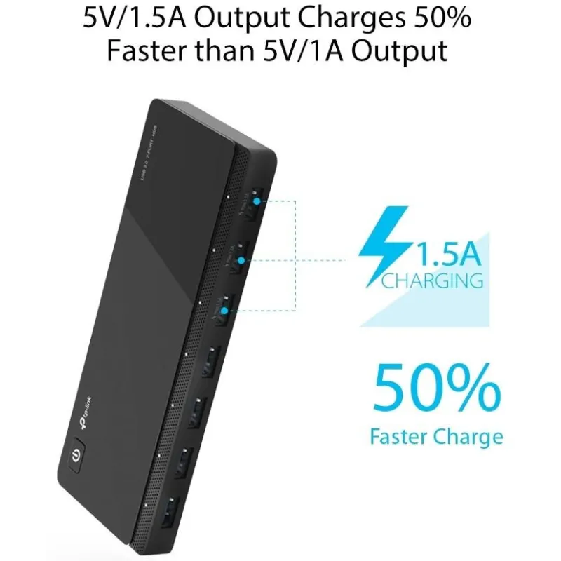 DISEÑADO PARA CARGAR RÁPIDO: UH700 puede entregar hasta 5V/1.5A de salida que carga un 50% más rápido y ahorra hasta un 30% en tiempo de carga*. Cargar completamente un Galaxy S6 edge toma solo 100 minutos con el Hub USB UH700, mientras que toma 150 minutos con un Hub USB que soporta una salida de 5V/1A.*