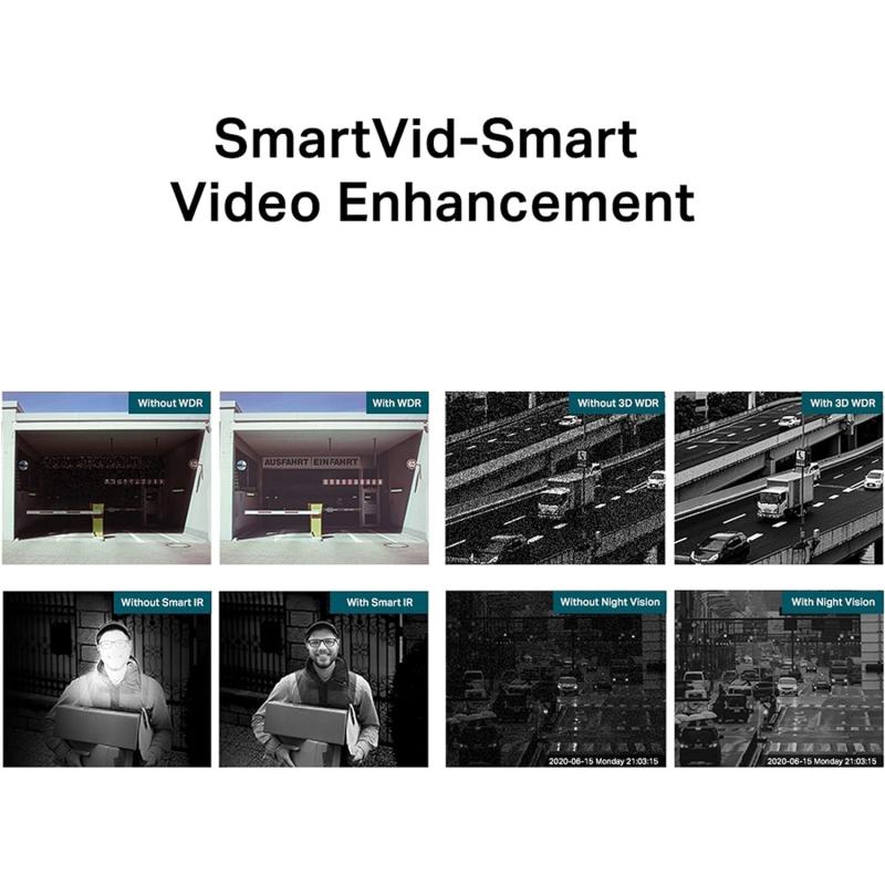 NO TE PIERDAS NI UN DETALLE: SmartVid-Smart Video Enhancement Las tecnologías profesionales de VIGI procesan videos para mejorar en gran medida su calidad, lo cual es vital para su monitoreo, incluidos Smart IR, WDR, 3D DNR y Night Vision.