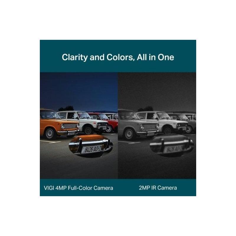CLARIDAD Y COLORES, TODO EN UNO: Monitorea detalles claros y coloridos las 24 horas incluso en la noche más oscura. La cámara de Color Completo de VIGI proporciona resoluciones máximas de 4MP y asegura un monitoreo colorido con su lente de gran apertura, sensor de alta sensibilidad y luces suplementarias adjuntas.