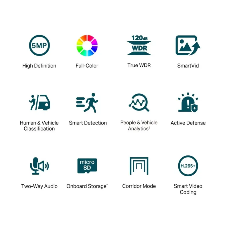 IMPRESIONANTE EXPERIENCIA VISUAL LAS 24 HORAS, LOS 7 DÍAS DE LA SEMANA: Monitor de súper alta definición de 5 MP. Detalles claros y coloridos las 24 horas, incluso en noches completamente oscuras. La cámara VIGI Full-Color proporciona resoluciones máximas de 5 MP y garantiza un monitoreo colorido con su lente de gran apertura, sensor de alta sensibilidad y luces suplementarias adjuntas.