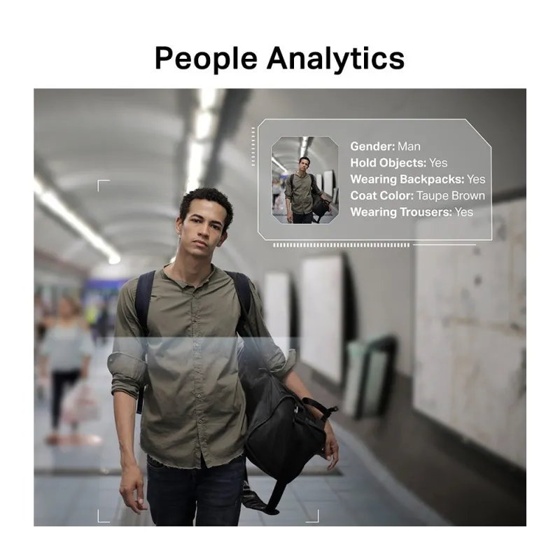 PEOPLE ANALYTICS: Filtre las personas de interés por diversos atributos, como género, longitud del cabello y vestimenta, lo que le permitirá mejorar la eficiencia de la búsqueda.