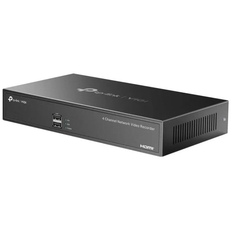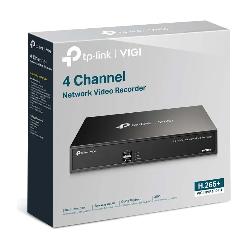 Grabador de Video Tp-link Vigi NVR1004H con resolución 3840 x 2160 píxeles, admite almacenamiento hasta 10 TB y grabación en 4 canales simultáneos