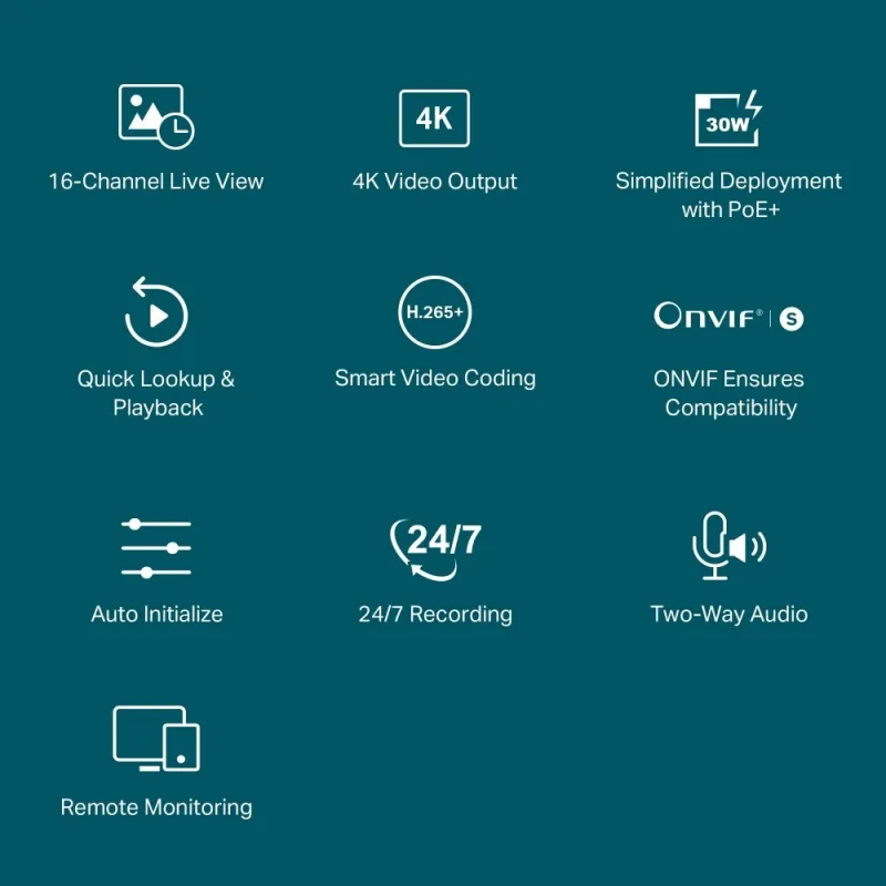 - Compatibilidad ONVIF?. Añade fácilmente Cámaras IP VIGI y otras marcas para crear una potente red de videovigilancia.