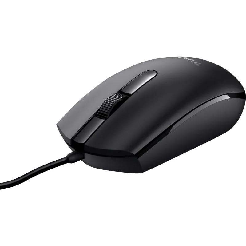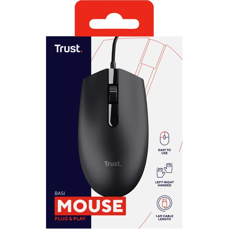 Ratón Trust Basi con resolución 1200 DPI tecnología óptica de movimiento y diseño ambidextro conexión USB tipo A y cable de 1,6 metros.