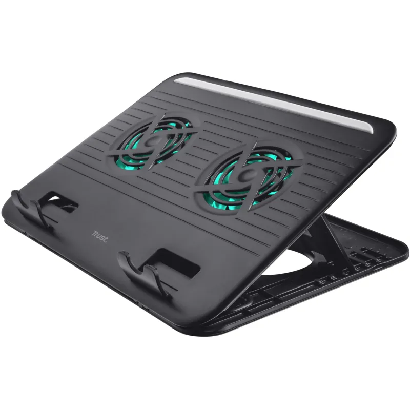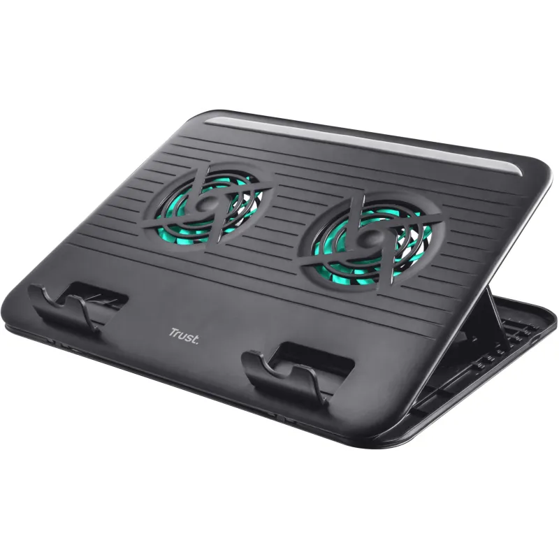 Base de Refrigeración Trust Cyclone 17866 con ventiladores incluidos puerto USB 2.0 diseño negro compatible con pantallas de hasta 16 pulgadas.
