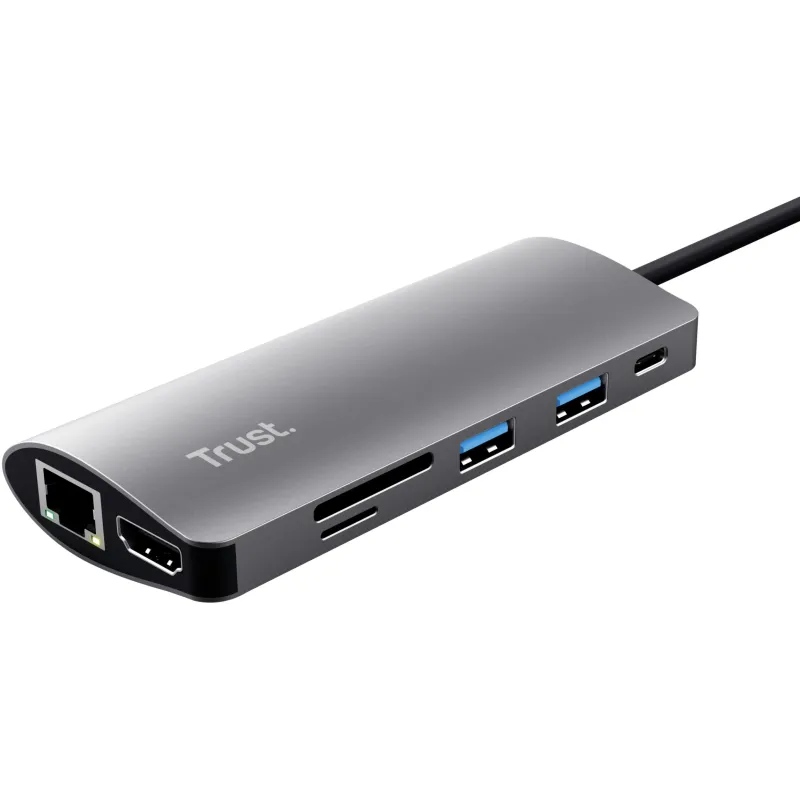 Trust Dalyx 23775 Docking Station USB-C a RJ-45/USB-A/HDMI/USB-A/USB-C/microSD/SD Gris