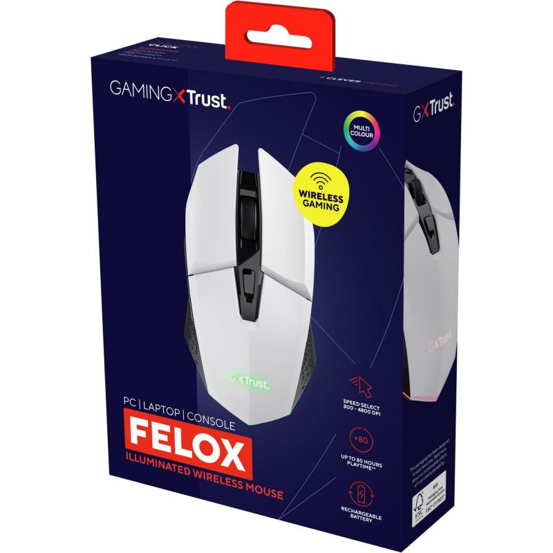 Trust GXT 110 FELOX Ratón Gaming Inalámbrico Iluminado 4800 DPI Blanco