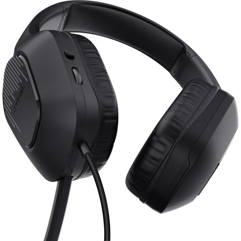 Auriculares Trust GXT 415 Zirox sonido envolvente micrófono plegable control on-ear y diadema ajustable, Negros