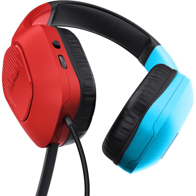 ESTILO Y FUNCIONALIDAD EN UN SOLO DISEÑO: Disponibles en negro, cian y rojo, los Auriculares Trust GXT 416S Zirox combinan un diseño atractivo con un rendimiento excepcional. Su estructura de ABS garantiza durabilidad, mientras que su sistema de control giratorio y botones on-ear permiten un manejo intuitivo y rápido.