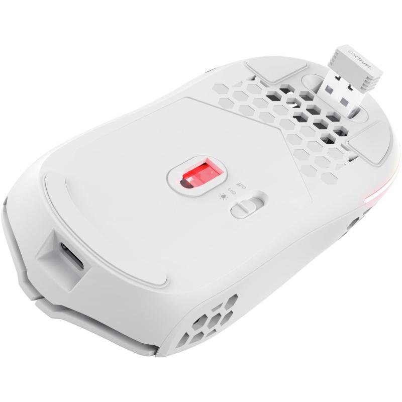 Ratón Trust GXT 929 Helox Inalámbrico por USB-A, iluminación RGB, DPI máximo de 4800, 6 botones, color Blanco
