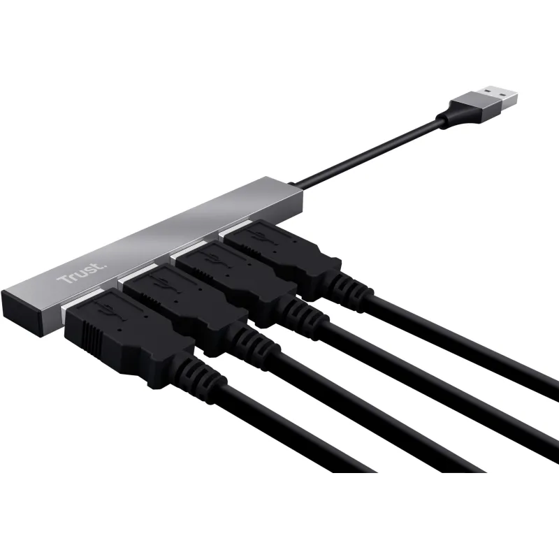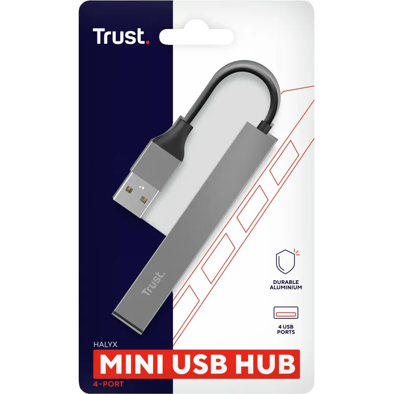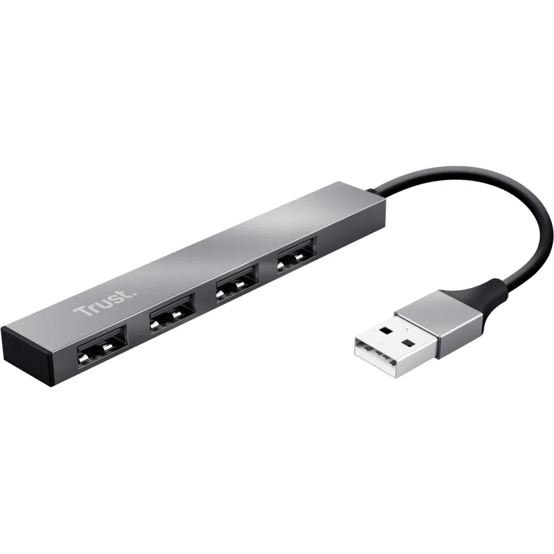 Trust Halyx con 4 puertos USB 2.0 velocidad de transferencia de datos 480 Mbit/s carcasa de aluminio y compatibilidad con Windows Mac y ChromeOS.