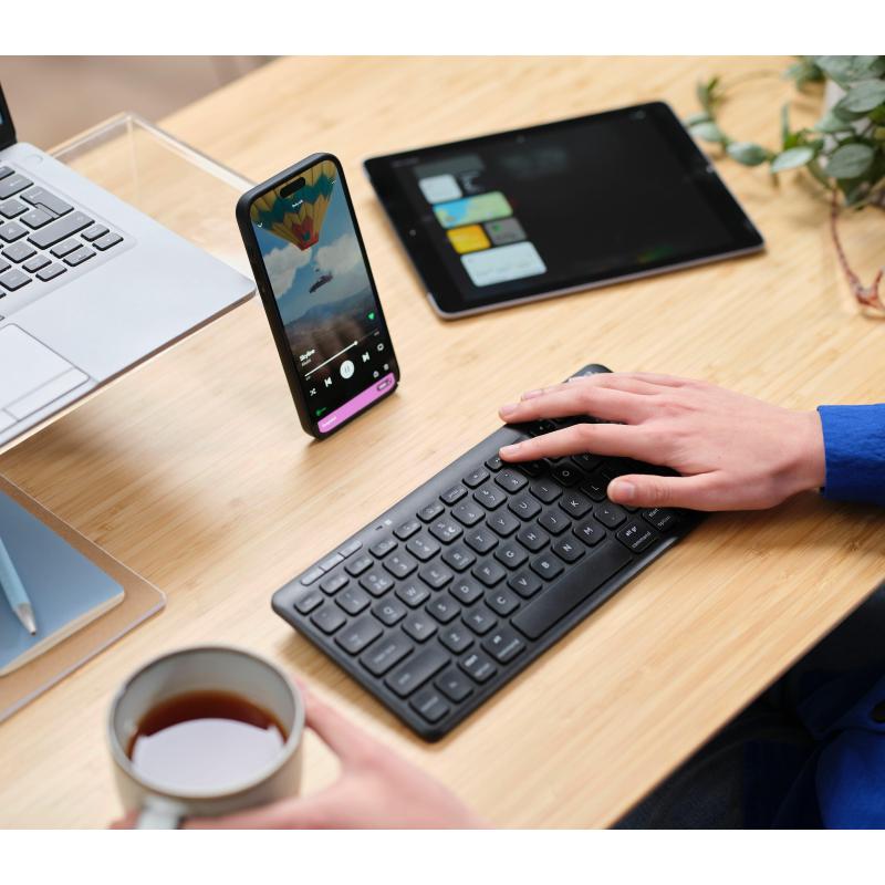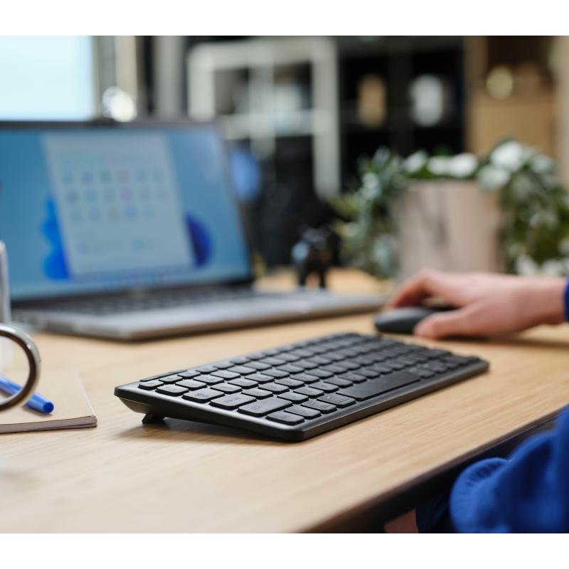LYRA TECLADO INALÁMBRICO COMPACTO: Teclado inalámbrico compacto y multidispositivo que garantiza una conexión fácil y práctica; fabricado con materiales reciclados
