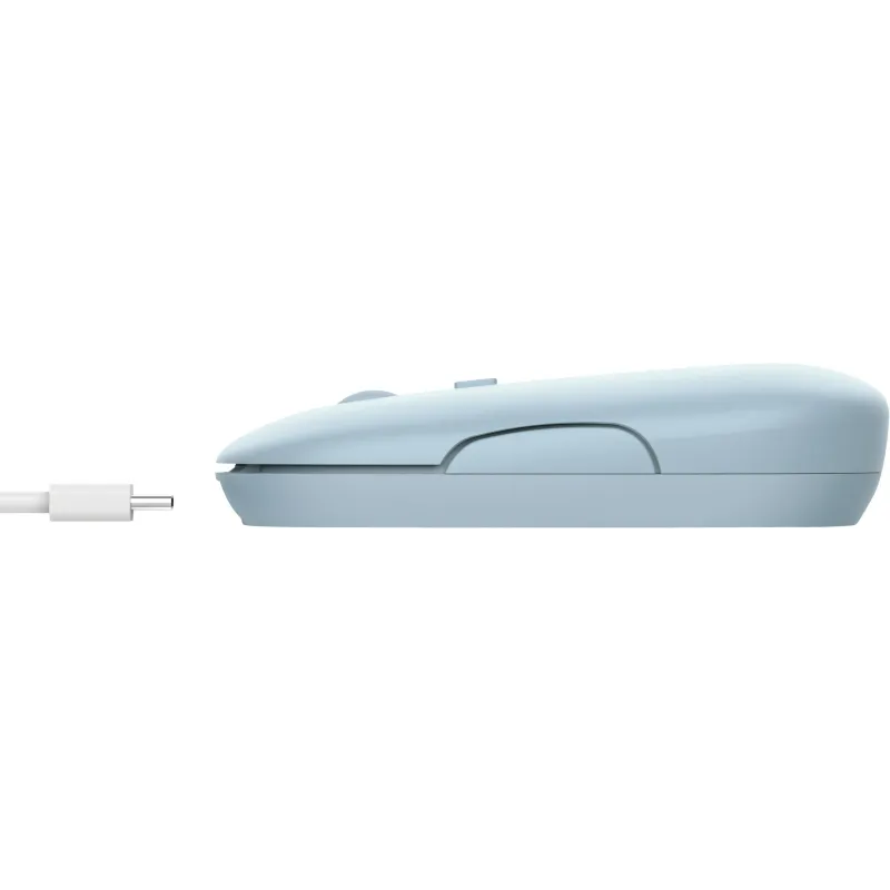 Ratón Trust Puck con resolución de movimiento 1600 DPI conectividad RF Wireless + Bluetooth diseño ambidextro y clic silencioso recargable.