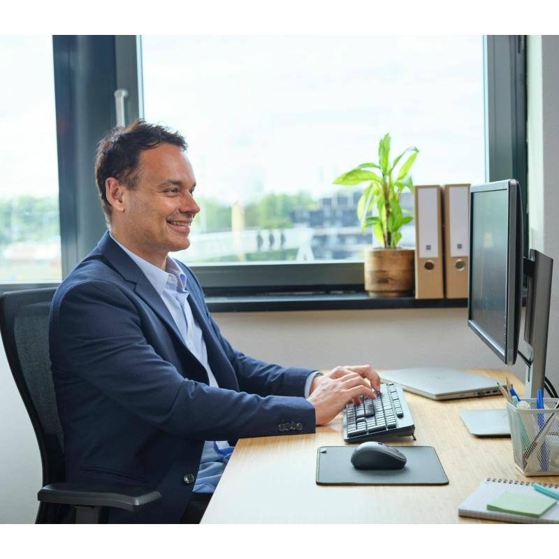 Este teclado inalámbrico recomendado para oficina utiliza tecnología RF para una conexión fiable y sin cables. Su diseño QWERTY en español incluye un formato completo (100%) con teclado numérico, teclas de acceso directo y teclas multimedia. Con interruptores de membrana y un perfil bajo, las teclas son silenciosas y proporcionan una experiencia de escritura cómoda y eficiente.