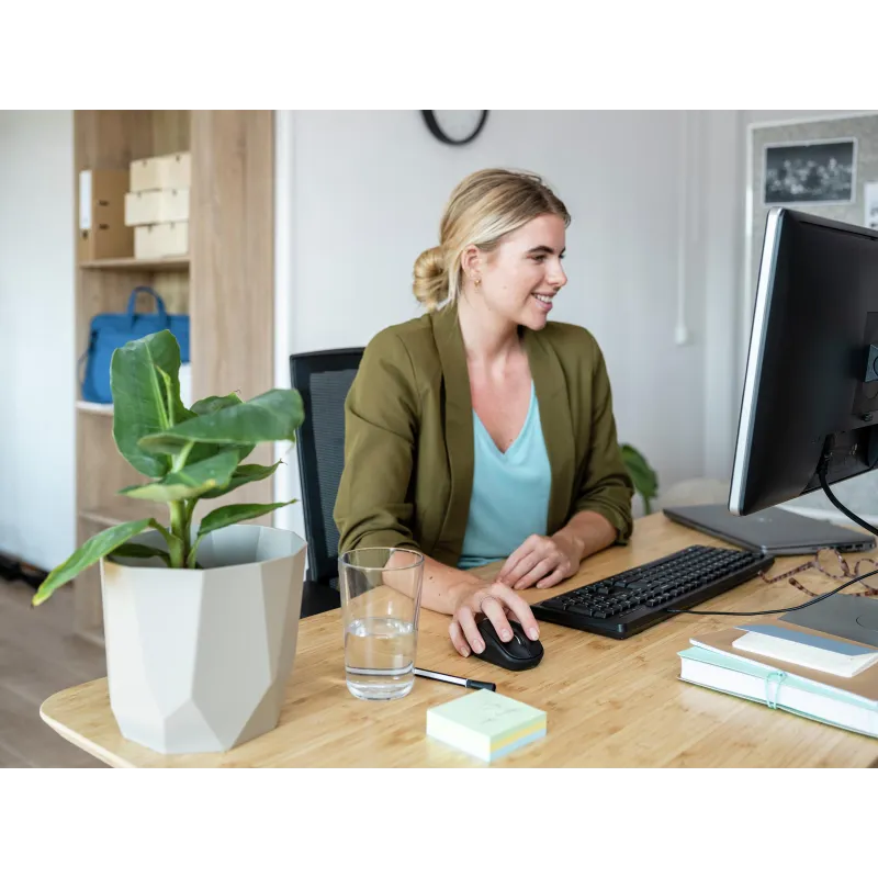 RATÓN INALÁMBRICO COMPACTO CON BOTONES SILENCIOSOS: Compacto ratón inalámbrico con botones silenciosos; fabricado con un 83% de materiales reciclados.