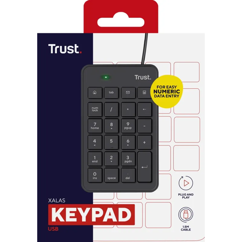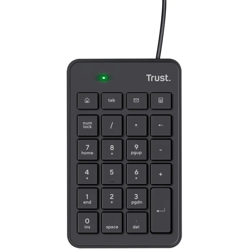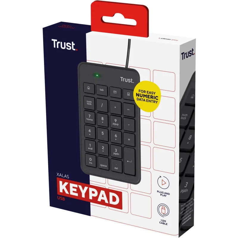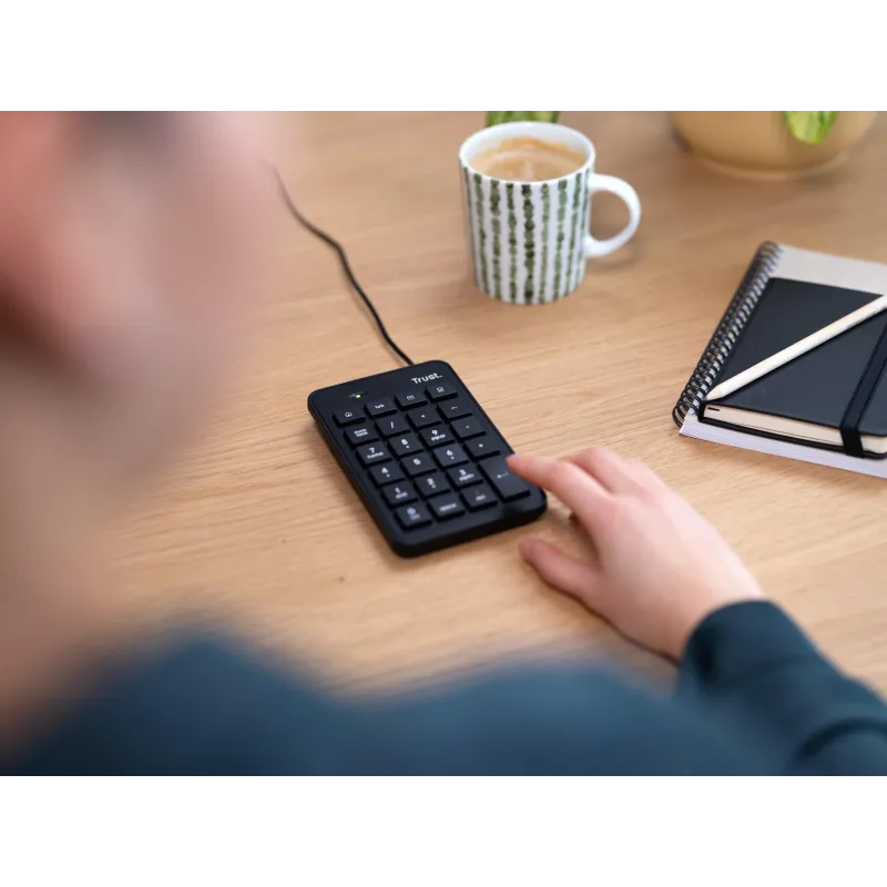 Teclado Numérico Trust Xalas mejora tu productividad con 23 teclas conexión USB y función calculadora, color Negro