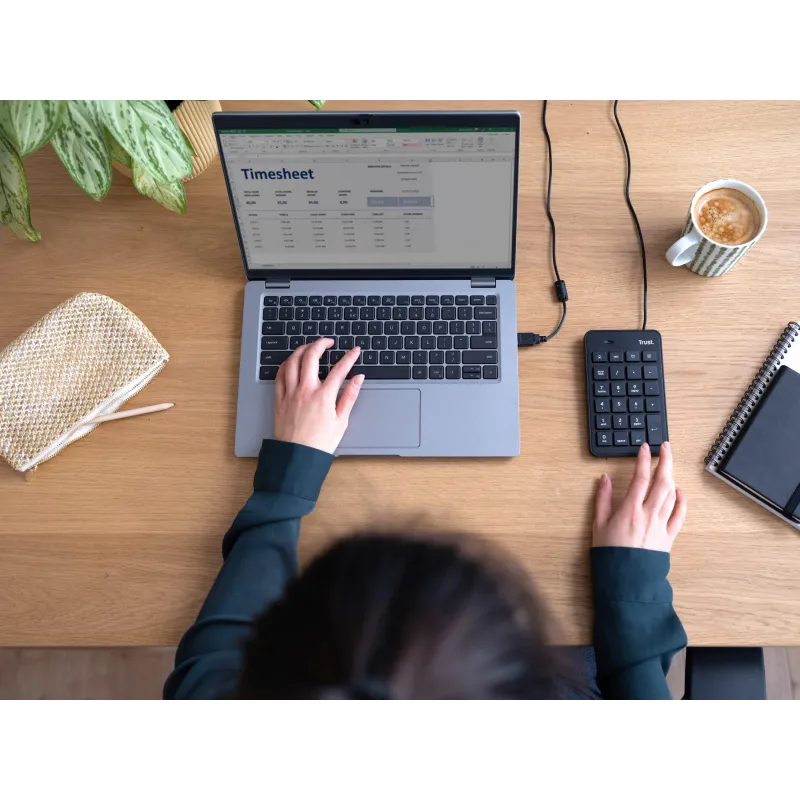 El teclado numérico USB para portátil es una herramienta esencial para quienes necesitan introducir datos de manera rápida y eficiente. Su diseño compacto y ergonómico permite conectarlo fácilmente a cualquier ordenador portátil o PC mediante su interfaz USB, sin necesidad de instalaciones adicionales gracias a su función Plug and Play. Con un total de 23 teclas, este teclado numérico Trust Xalas incluye teclas de acceso directo que facilitan el trabajo diario, especialmente en tareas contables y de introducción de datos.