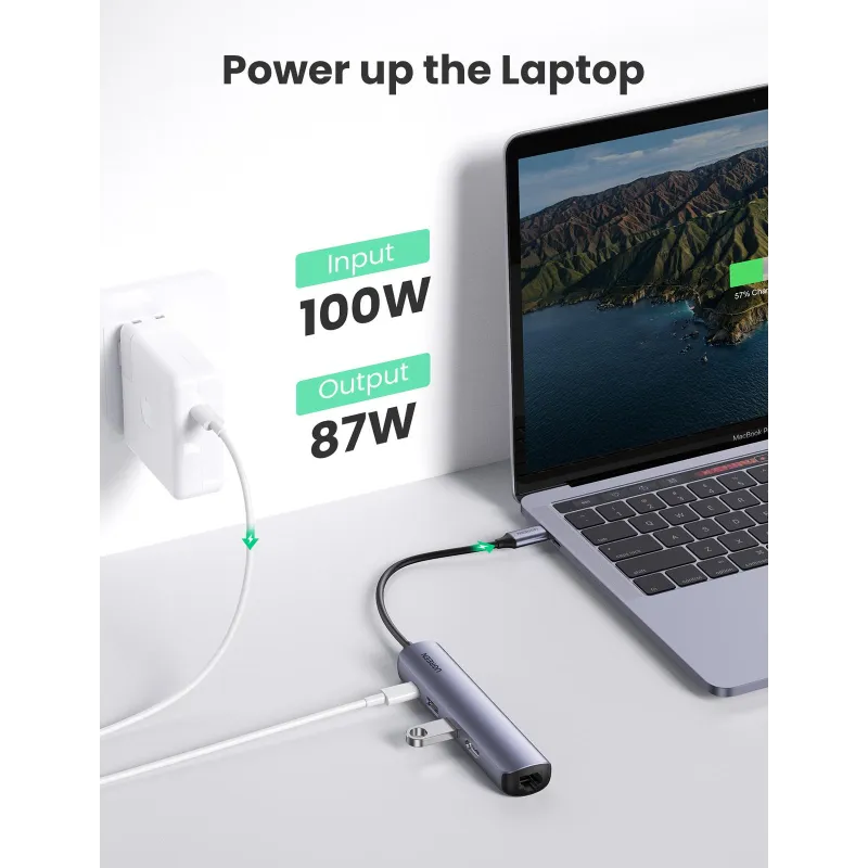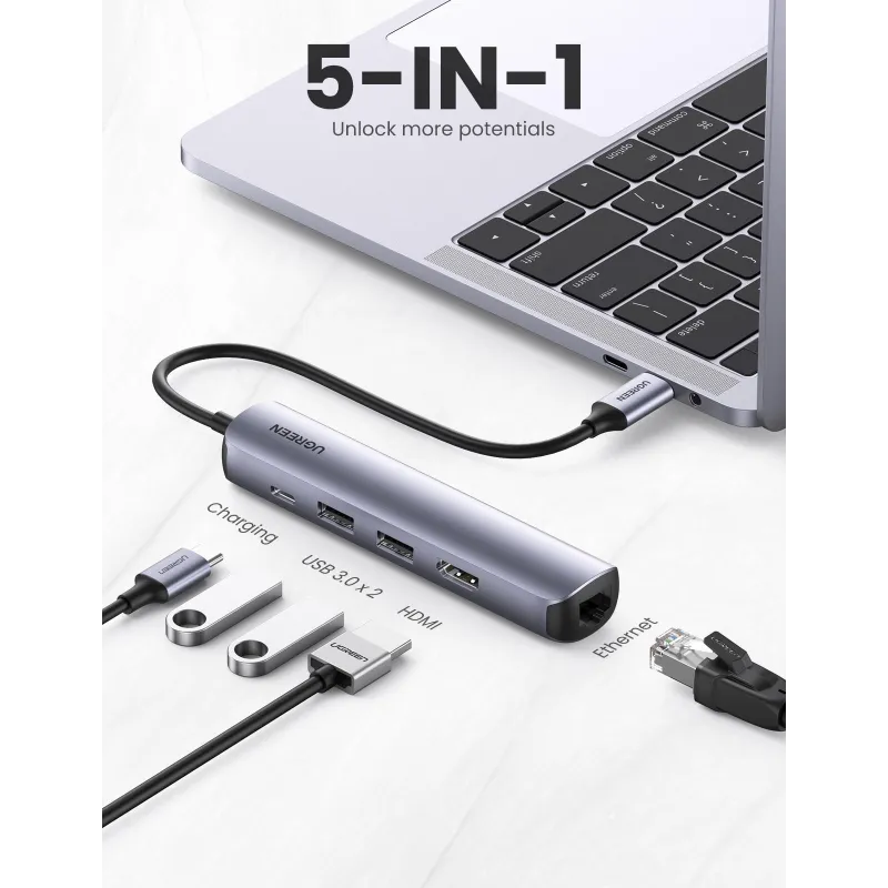 El Ugreen 10919 es un replicador de puertos USB-C pensado para portátiles finos y puestos compartidos. En un cuerpo compacto reúne HDMI, red por cable y dos USB-A, y deja la carga pasando por Power Delivery hasta 100 W.