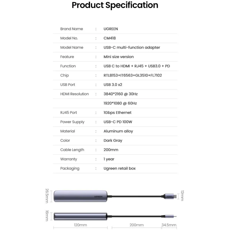 Replicador de puertos USB-C Ugreen 10919 con Ethernet