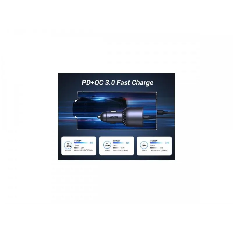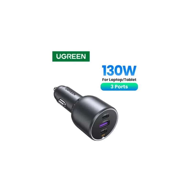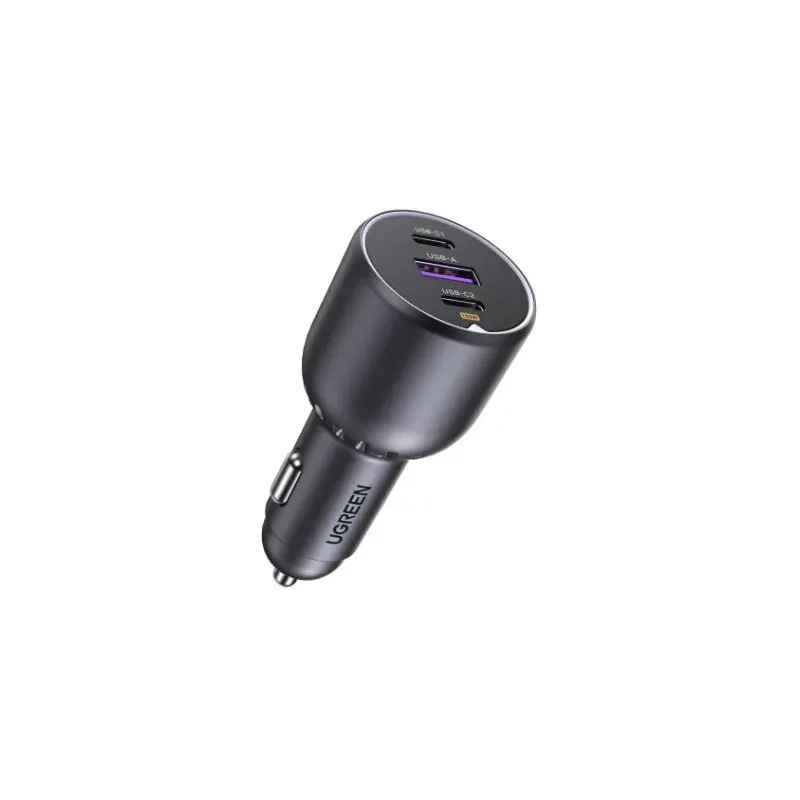 Cargador de Móvil Ugreen 35025 con entrega de energía USB 100 W, alimentación por encendedor de cigarrillos y carga simultánea de hasta 3 dispositivos