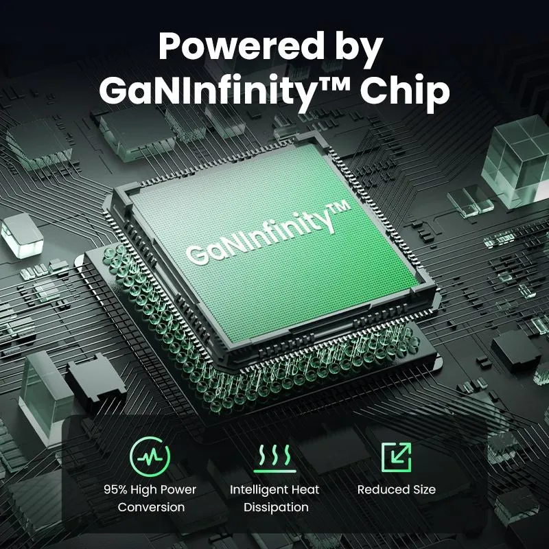 Cargador de Móvil Ugreen 35042 GaNInfinity con entrega de energía USB 65 W, compatible con carga rápida y hasta tres dispositivos conectados simultáneamente