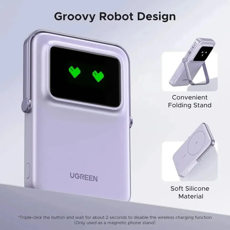 Ugreen 35606 Morado PowerBank MagSafe Inalámbrico Magnético Robot 5000mAh 20W