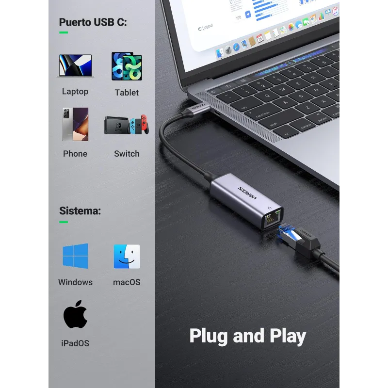 Gracias a su interfaz USB Type-C y USB Type-A, la Tarjeta de Red Ugreen 50737 es compatible con una amplia variedad de dispositivos, desde portátiles modernos hasta ordenadores más antiguos. Esta versatilidad permite utilizarla en diferentes entornos sin preocuparse por la compatibilidad del puerto. Su diseño plug and play facilita la instalación en segundos, y su estructura externa evita la necesidad de abrir el equipo. Además, su acabado en color plata le da un toque profesional que encaja perfectamente en cualquier oficina o espacio de trabajo. Es una solución eficaz para quienes necesitan mejorar su conectividad de forma rápida y sin complicaciones técnicas.
