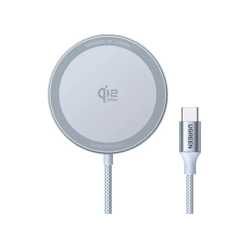 Cargador de Móvil Ugreen 55959 MagFLow, cargador inalámbrico para smartphone con alimentación USB, tipo auto y potencia máxima 25 W, color gris