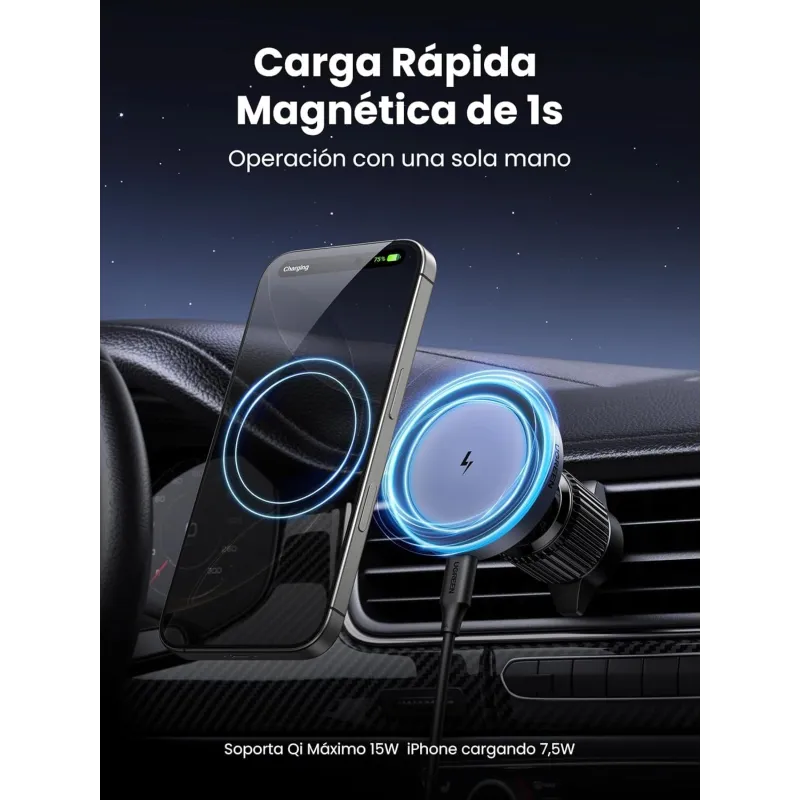 El Cargador de Móvil Ugreen 55959 MagFlow es la elección perfecta para quienes buscan un producto que combine tecnología de vanguardia y facilidad de uso. Su cargador inalámbrico proporciona una solución moderna y práctica, mientras que la potencia máxima 25 W asegura una carga eficiente y rápida en todo momento. Al poder conectar un solo dispositivo, se maximiza la estabilidad de carga, evitando fluctuaciones de energía. Este modelo está pensado para quienes valoran la calidad, el diseño y la funcionalidad en un solo accesorio. Su compatibilidad universal lo convierte en un imprescindible para cualquier conductor moderno.