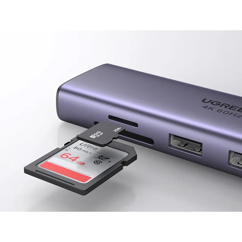Ugreen 60515 Hub 7in1 USB-C a HDMI/3x USB 3.2/USB-C/SD/Micro SD Gris
